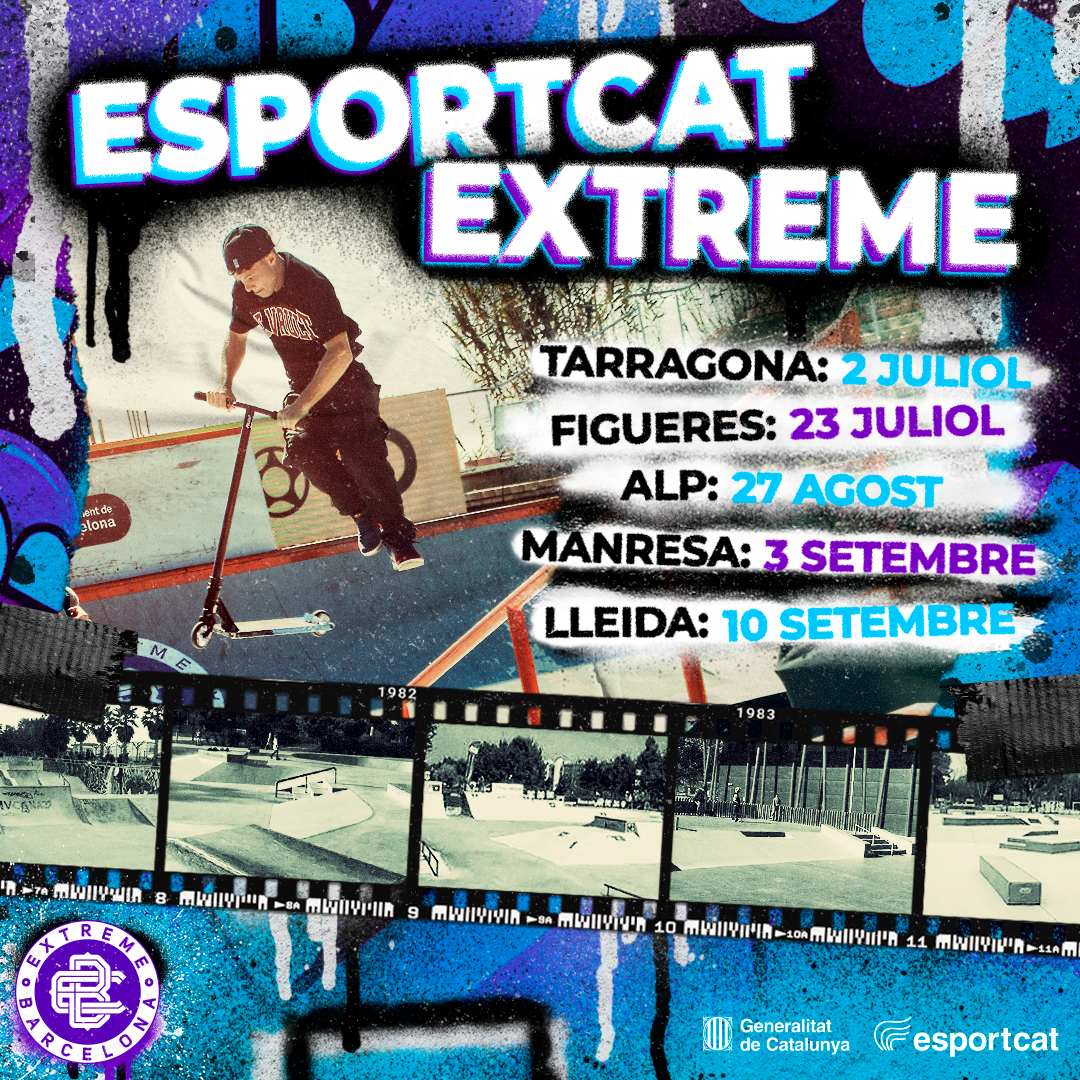 Extreme Barcelona travels around the Catalan territory with the EsportCat Extreme Series, a circuit with the support of the Secretaria General de l’Esport i de l’Activitat Física where Skate, Scooter and BMX will visit the skate parks of five Catalan cities during July, August and September: